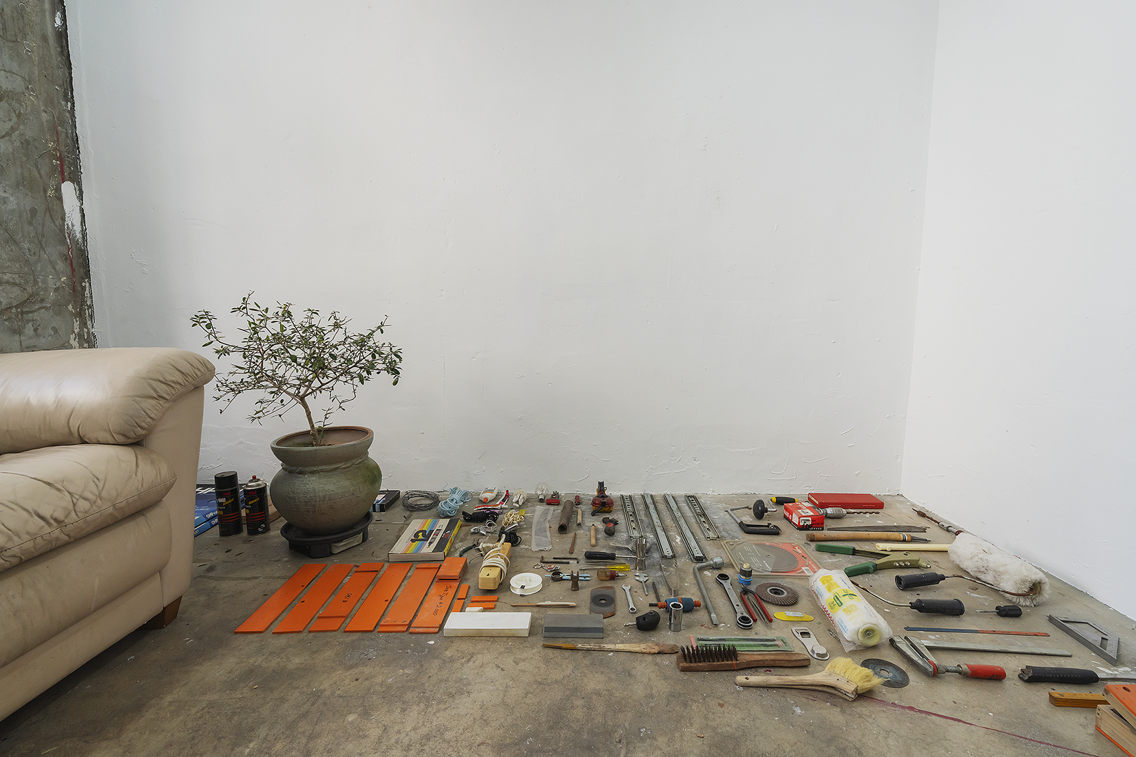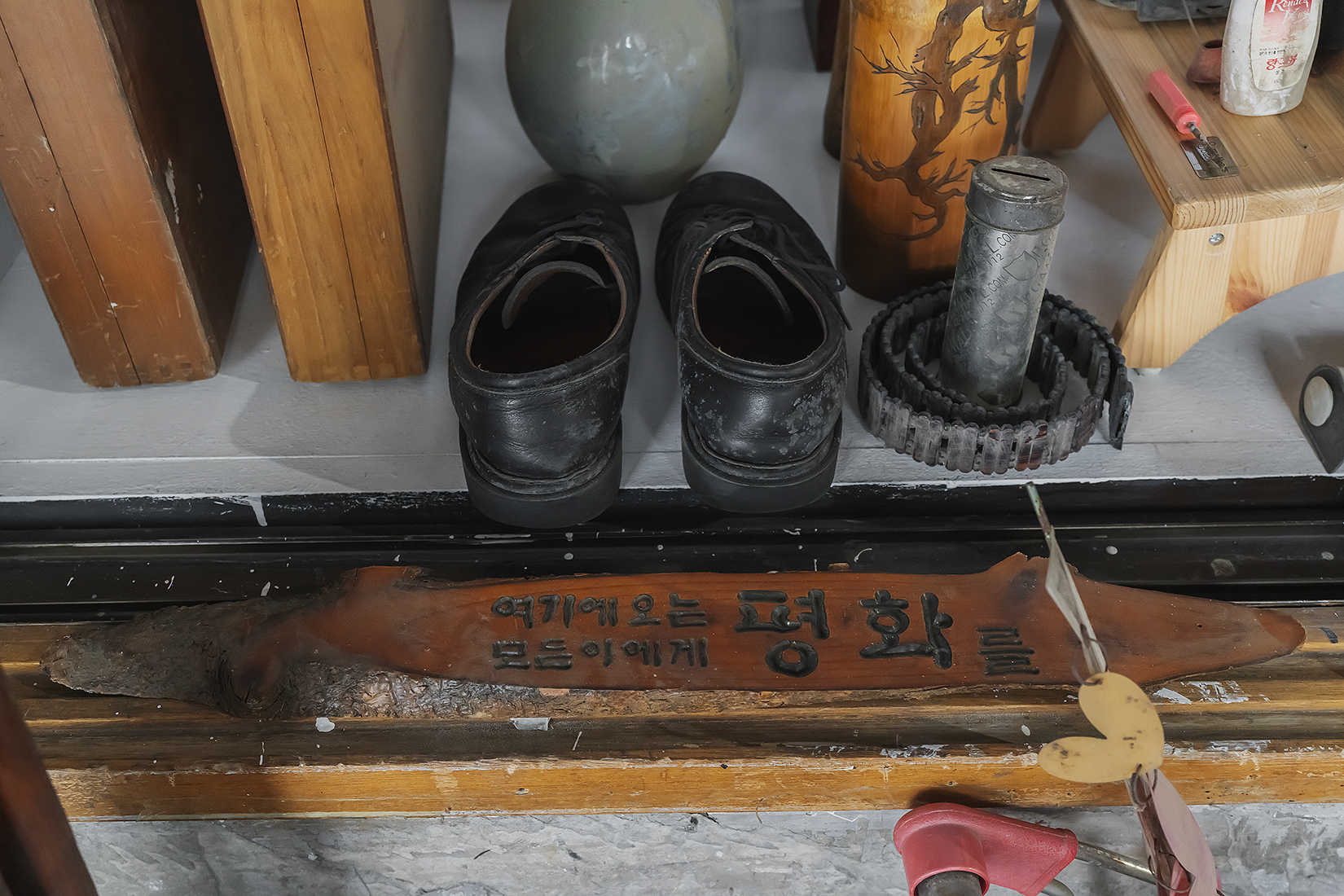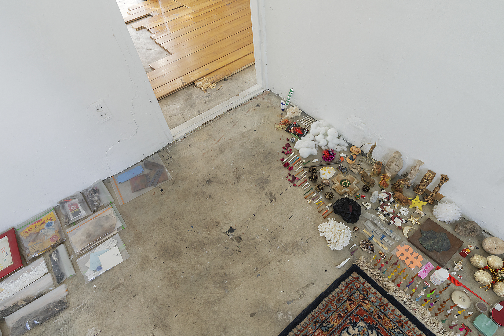 At the end of that time, Kim chooses to place them back into, not in their place of origin, but here, in this space and moment. The objects remain unclaimed by purpose or meaning, laid out as they are, perhaps ready to find their way toward someone, somewhere, or something beyond the exhibition. In this sense, the exhibition becomes a site or a passage through which the act of release takes place once again. Staying within this space, Kim seeks to let go of and share what has been given to him, what continues to constitute his being. Perhaps, with you as well.