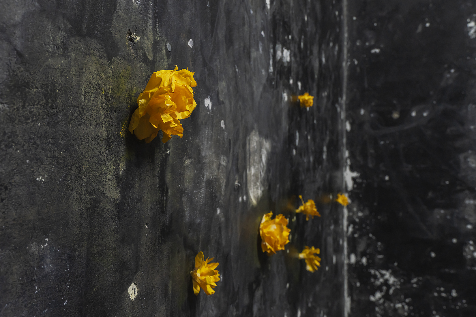 In his 11th solo exhibition, 𝘎𝘈𝘌𝘐𝘕𝘑𝘌𝘖𝘕 𝘔𝘞𝘖 𝘏𝘈𝘑𝘐?, Hak Lyang Kim turns back to the attitudes and conceptual bearings that have guided his past work, “work” both in the sense of artistic practice and in the sense of the karmic charge embedded in making. He asks himself how he should now position himself as an artist and how he might chart the way forward, proposing possibilities to himself along the way.